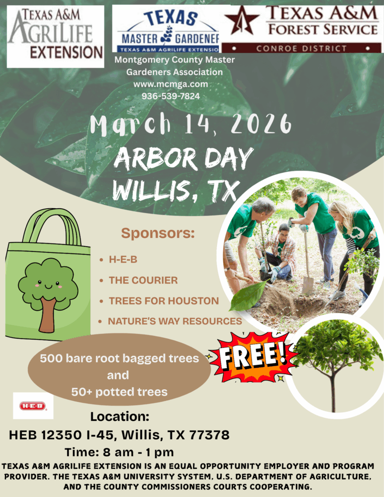 | Gardening Class - Saturday, March 14, 2026 | Arbor Day - Willis | 2026 Spring Plant Sale |
